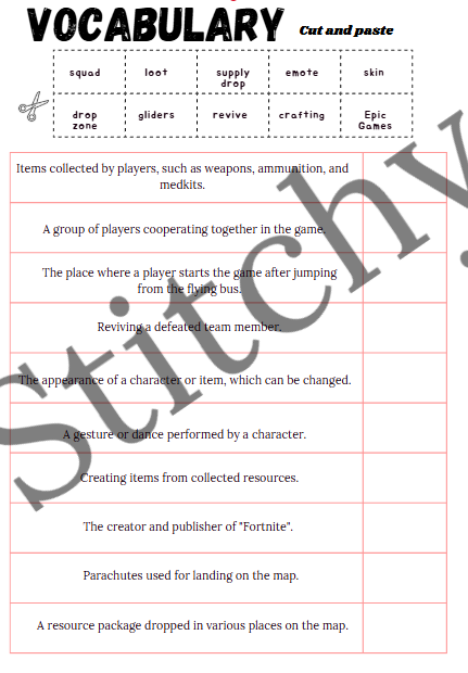 Sekcję słownictwa związanego z grą, idealną do nauki języka angielskiego.