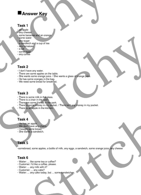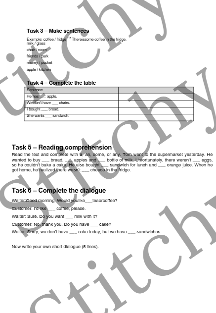 Karta pracy – Some / Any / A / An (język angielski, poziom A2)